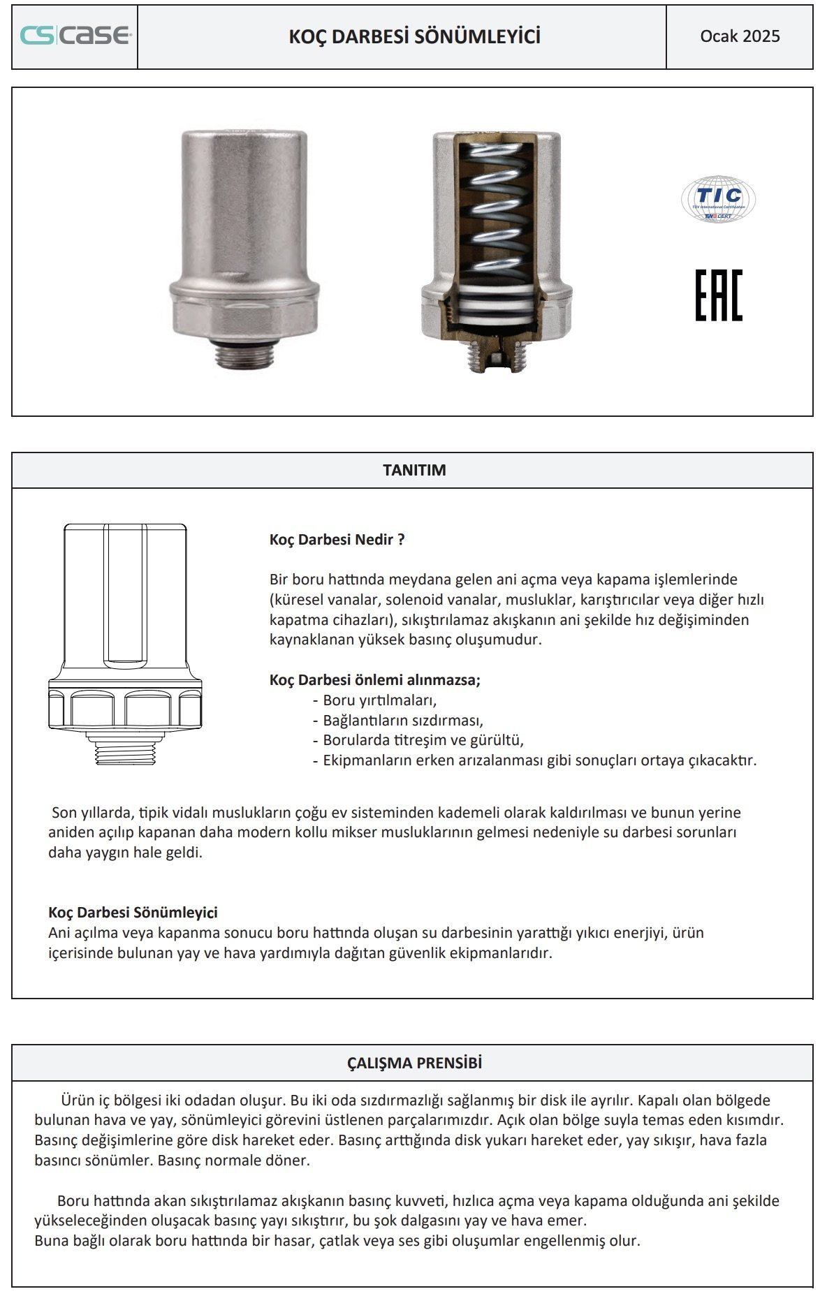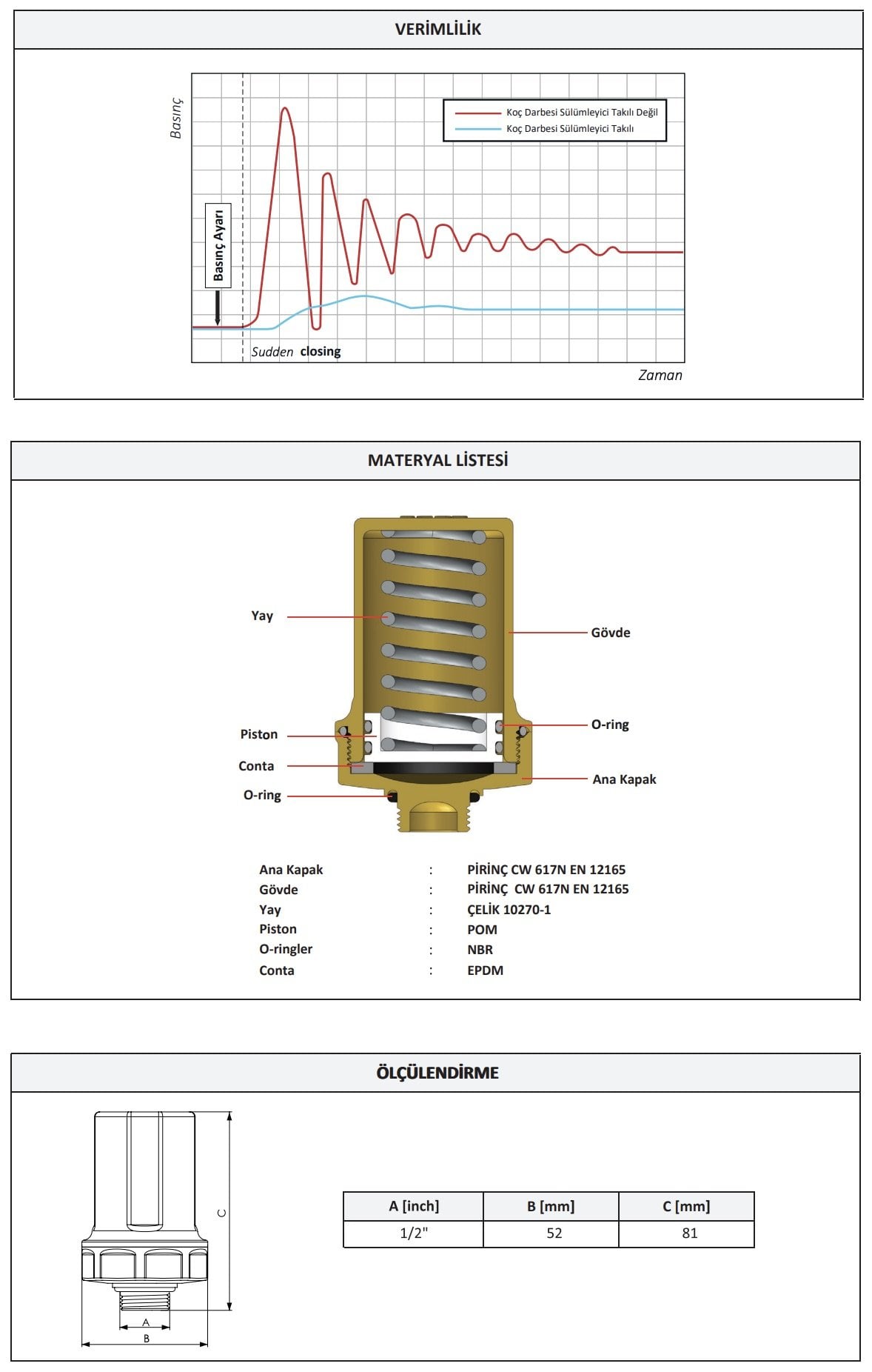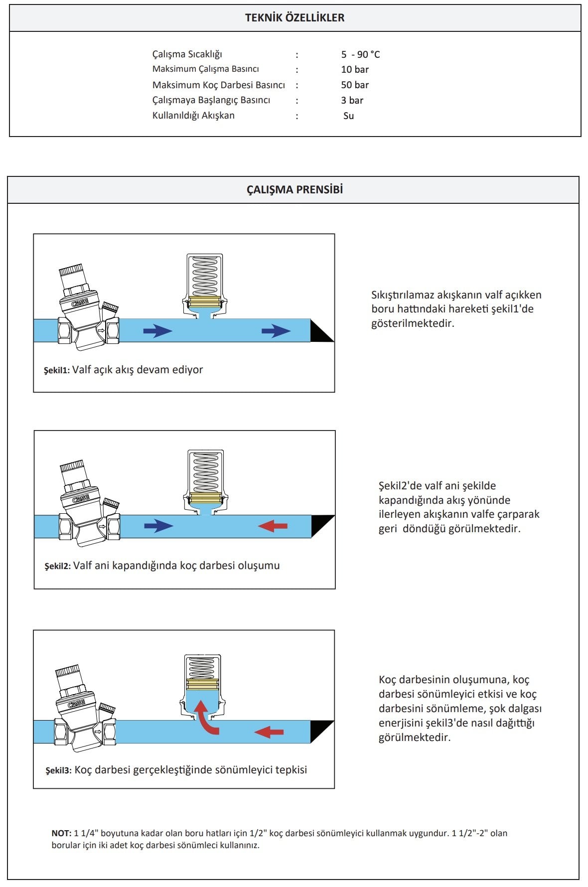 Enerji Transferi: Suyun yıkıcı enerjisi yay tarafından geçici olarak depolanır ve ardından sisteme kontrollü bir şekilde geri verilir. Bu sayede borulardaki aşırı gerilme ve gürültü önlenmiş olur.