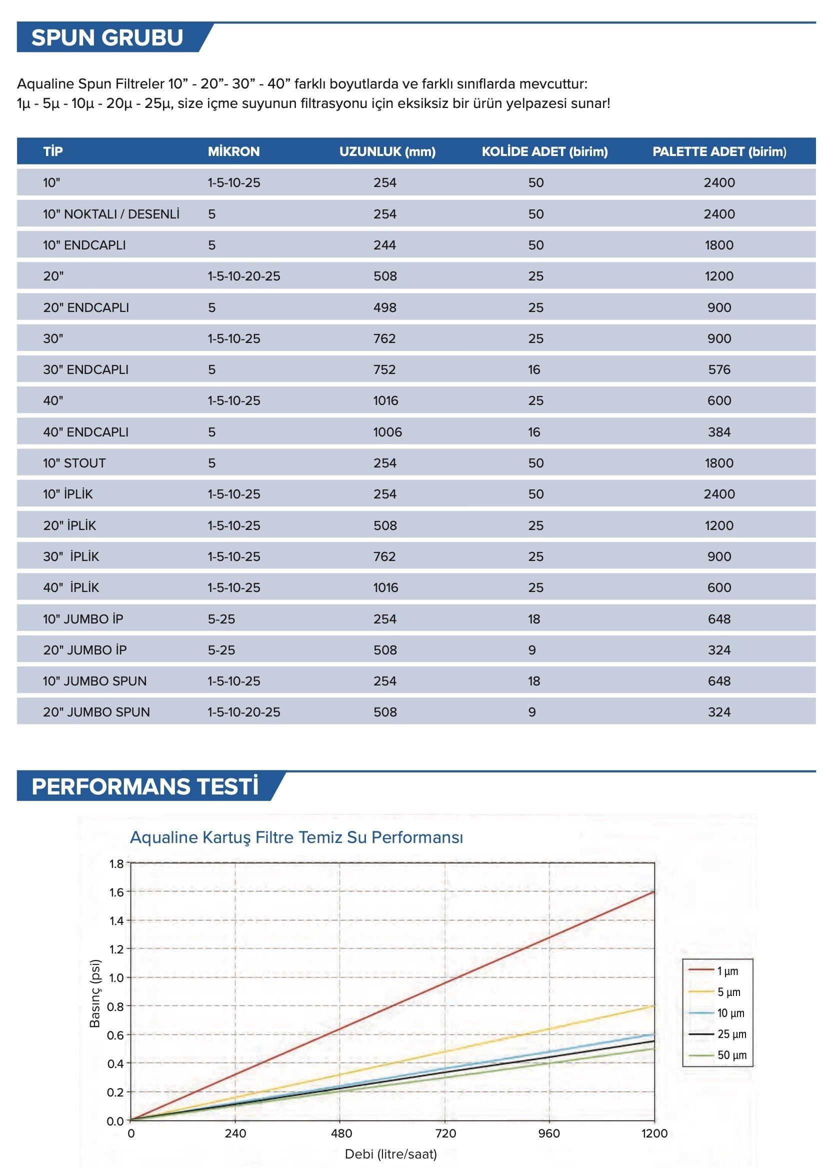 Sudaki toz seviyesindeki tortuyu tutan filtrelerdir. Filtrelerimiz Amerikan gıda ve ilaç bakanlığı FDA Onaylıdır ve içme suyunda güvenle kullanılabilir. Küçük mikron seviyesine sahip filtreler çok daha çabuk kirlendiklerinden daha sıklıkla değiştirilmesi gerekir. Değişim sıklığı suyun kirliliğine ve kullanım oranına göre 1 ayla 1 yıl arasında değişebilir.