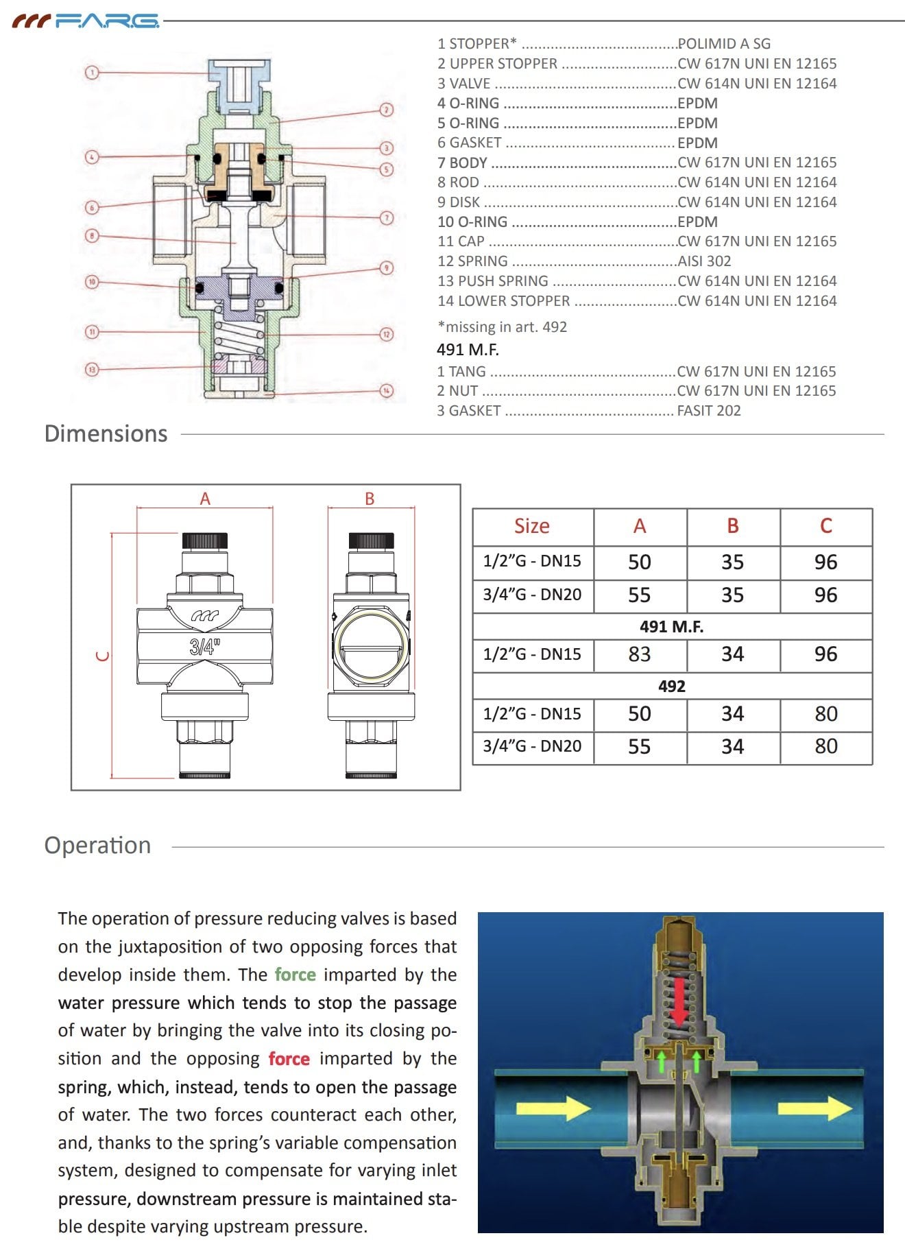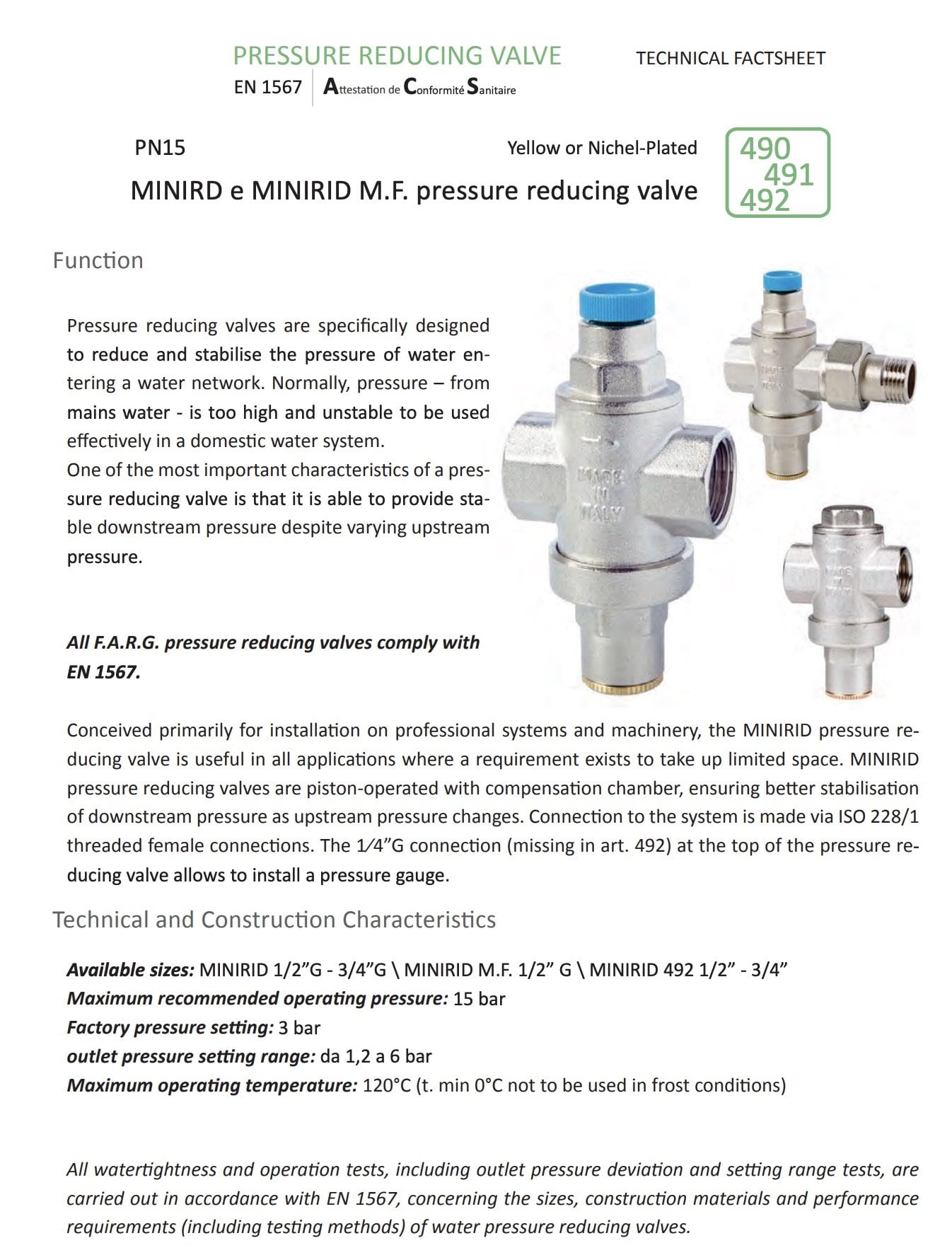 Farg 1/2'' - 490 Su Basınç Düşürücü (Maks.10 Bar) Minirid 490