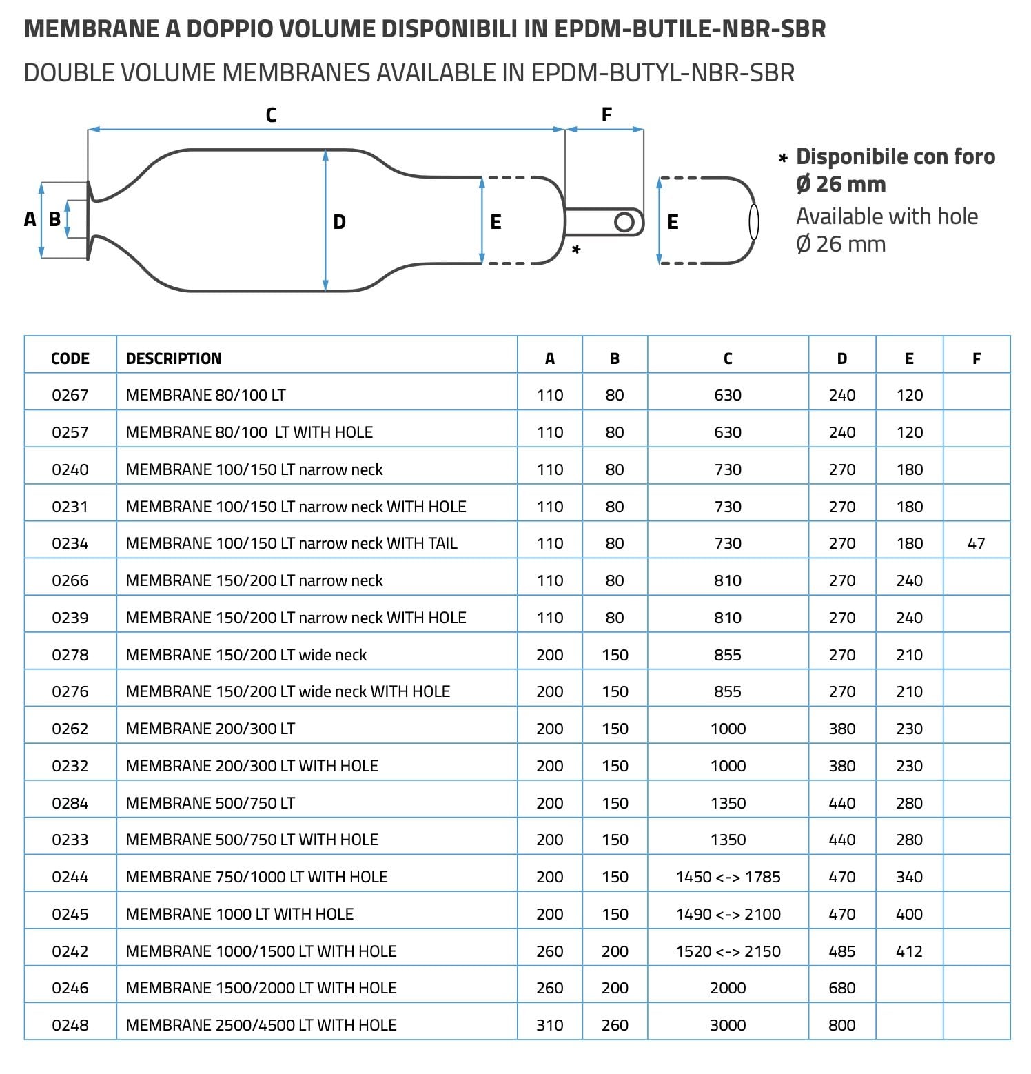 Sefa Membran 500/750 Litre - EPDM - İtalyan D150