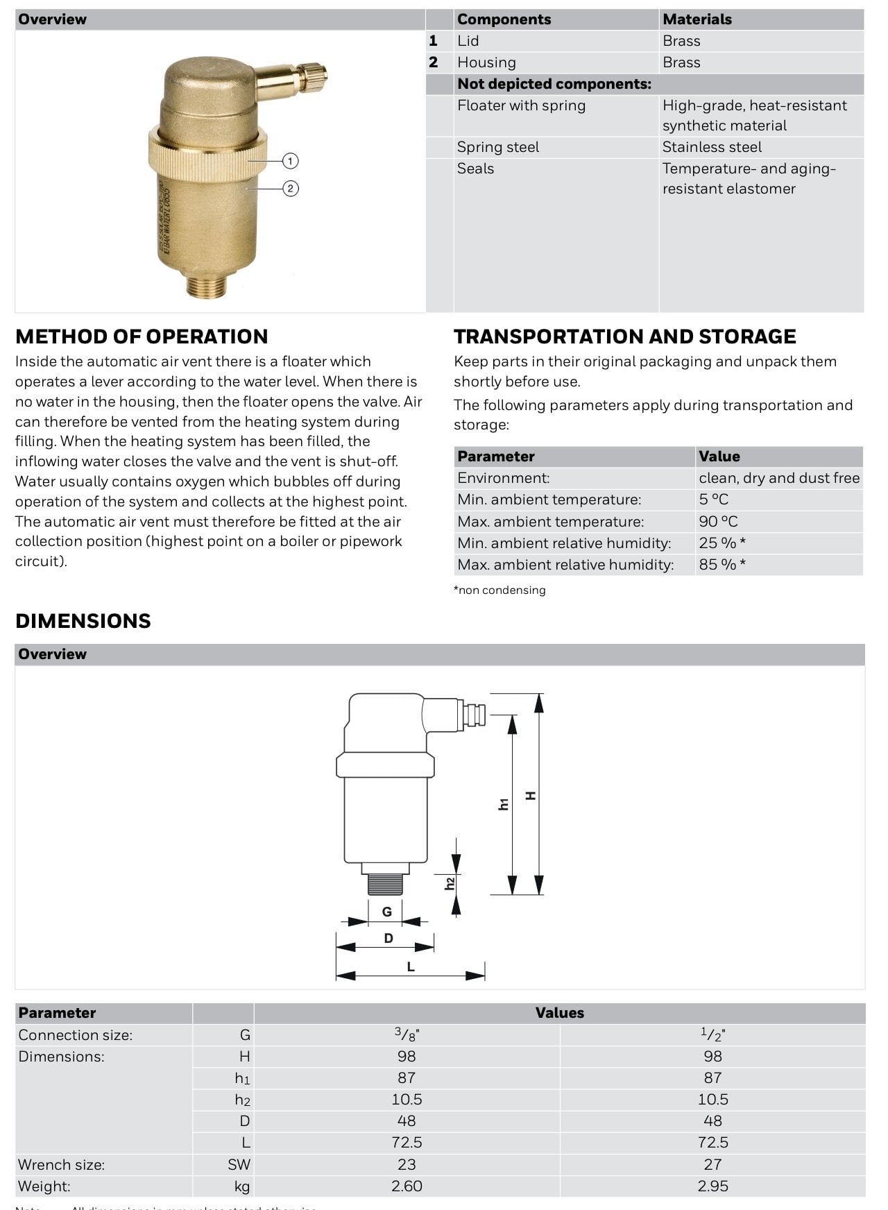 Resideo Braukmann E125S-1/2A Solar Otomatik Purjör 1/2'' - 150 °C' - İtalya Üretimi