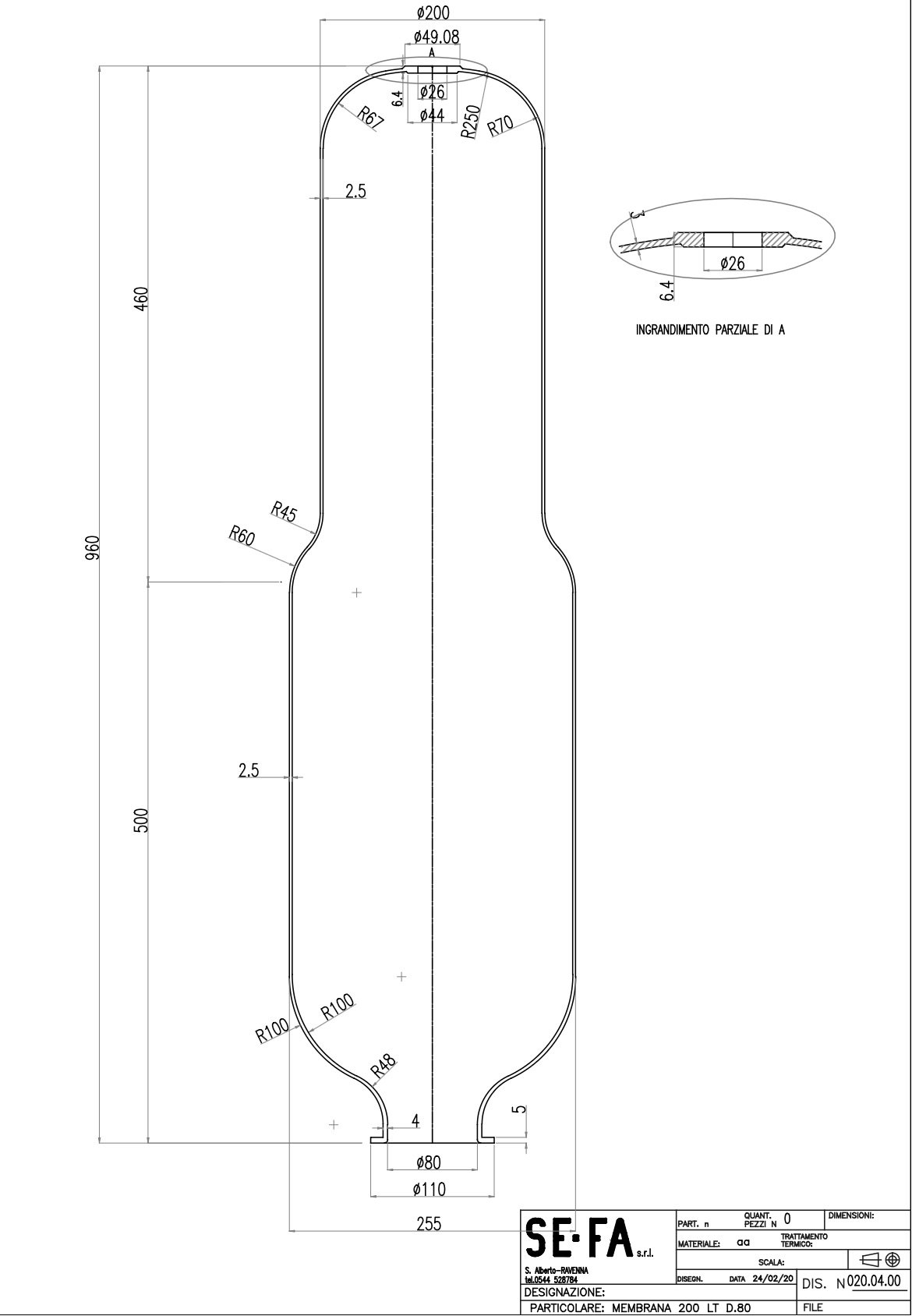 SEFA - MADE IN ITALY - Membran 200/300 Litre - DAR BOĞAZ - EPDM - İtalyan