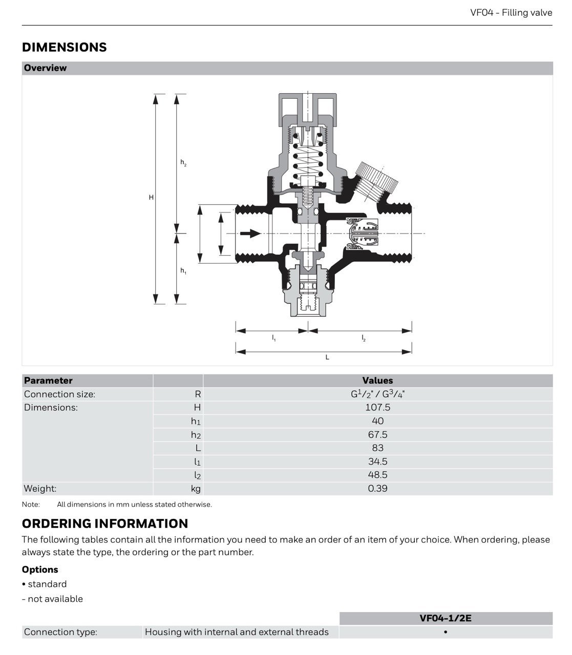 Honeywell VF04-1/2E Oto. Kazan Doldurma (1,5 -6 Bar) (3/4'' Bağlantılı)