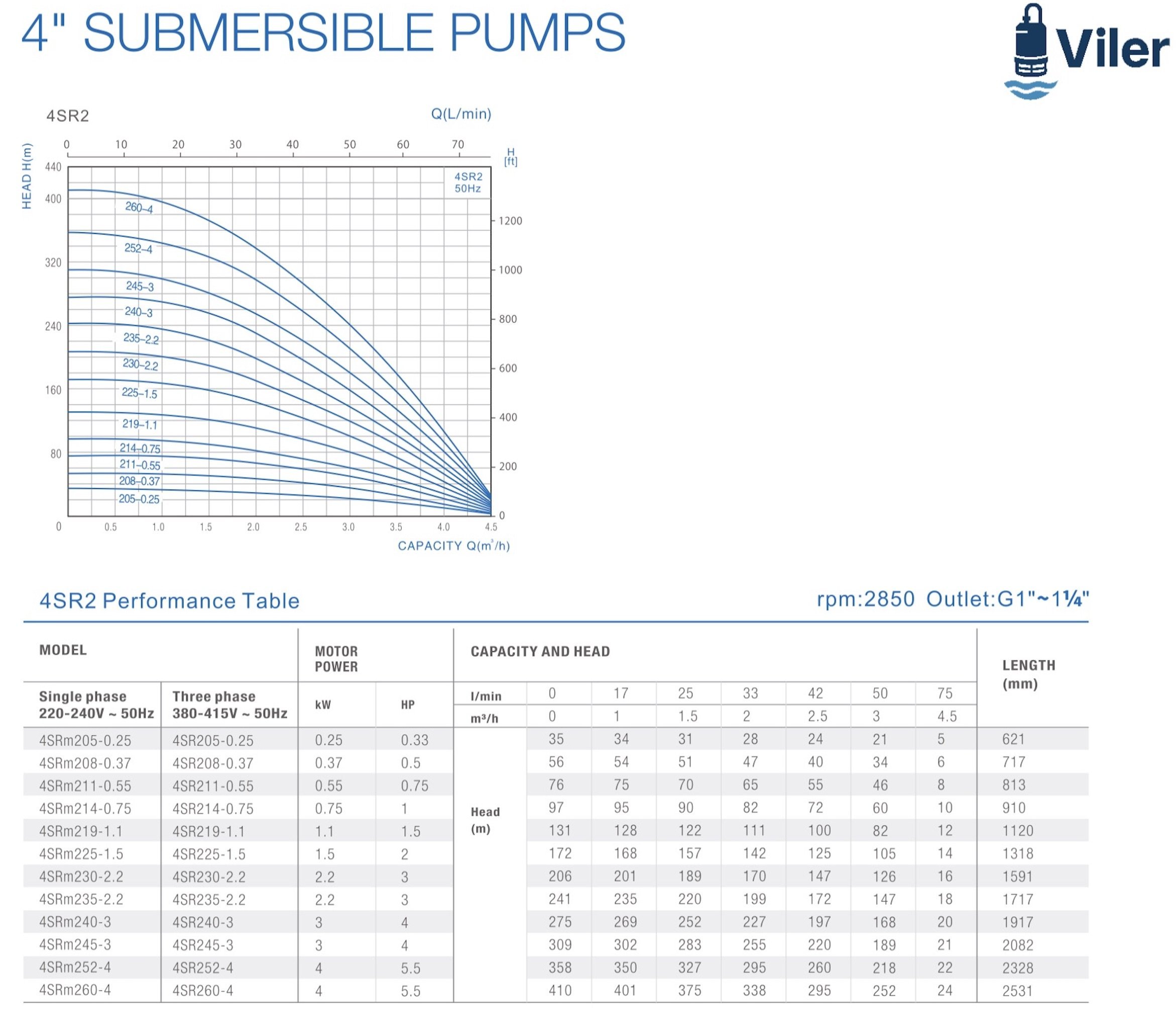 Viler 4SRM225 Tek Dalgıç Pompa ( 172 mss/ 2 HP) - 25 Kademe