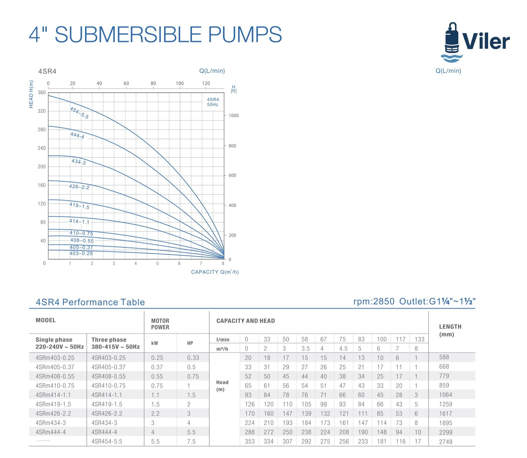 Viler 4SRM408 Motorlu Dalgıç Pompa 1 HP - 65 metre - 220 Volt