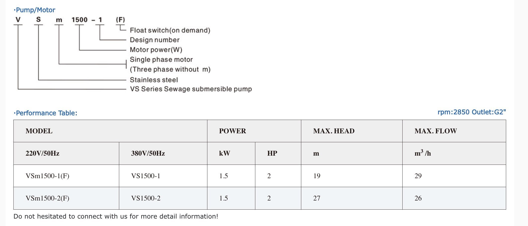 Viler VSM1500-2F Drenaj Dalgıç 2Hp - 27 metre- 2'' Çıkışlı